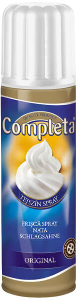 Completa Tejszínhab spray, 250ml-es kiszerelésben. Krémes, lágy textúrájú tejszínhab, amely tökéletes választás desszertek, kávék és sütemények díszítésére vagy ízesítésére.
